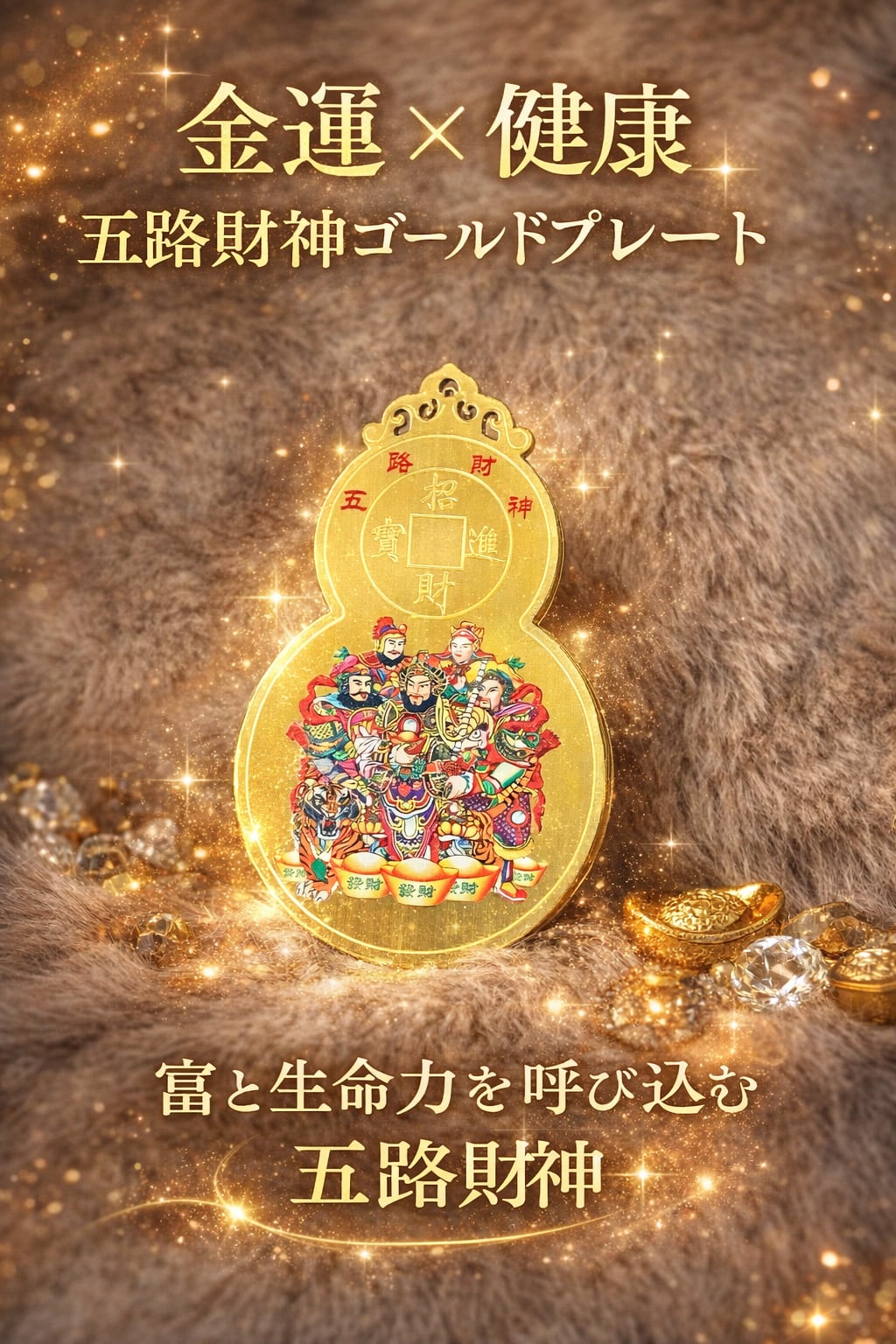 このゴールドプレートは、中国風水において「富を呼び、身体の巡りを整える」とされる
