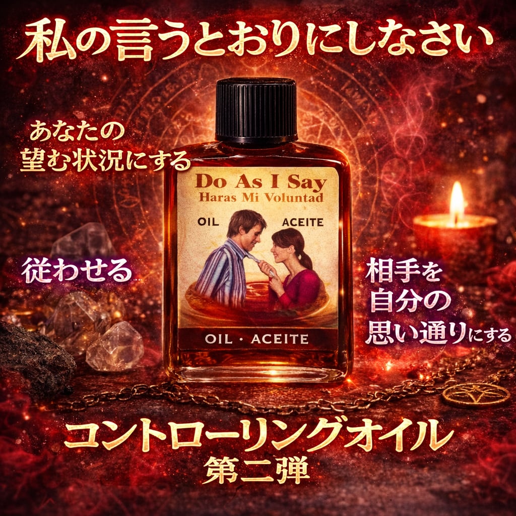 効能:自分の言うとおりに相手を従わせることができます。自分の望む状況や関係性を言葉にすることによって本当に望んだものを手に入れることができるマジカルオイルです。(コントローリングオイルに似ています!)